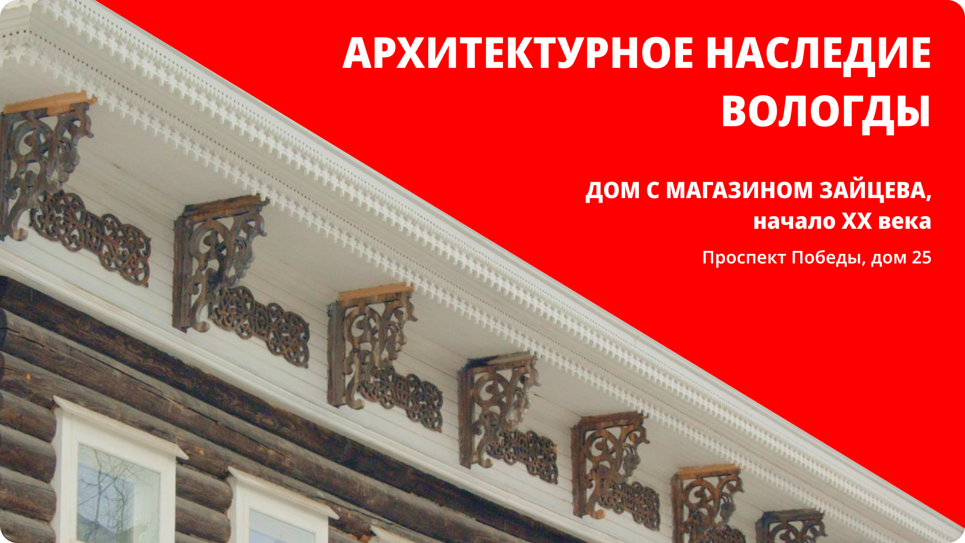 Дом на проспекте Победы, 25 в Вологде, известный до революции как дом купца Зайцева, был построен в начале XX века как торговое здание. Это трехэтажное кирпичное сооружение, выполненное в стиле модерн, занимает заметное место в застройке города и относится к числу наиболее значительных построек своего времени. Здание расположено на красной линии проспекта и выделяется тем, что было возведено как отдельно стоящее, с окнами на всех фасадах, хотя декоративное оформление получил только главный фасад.